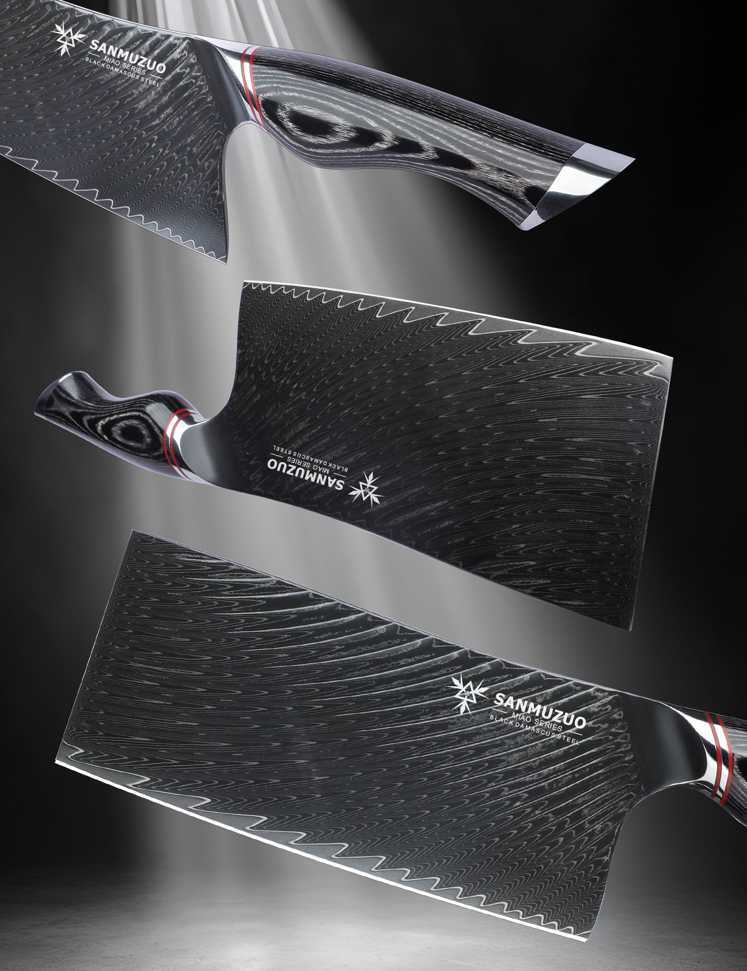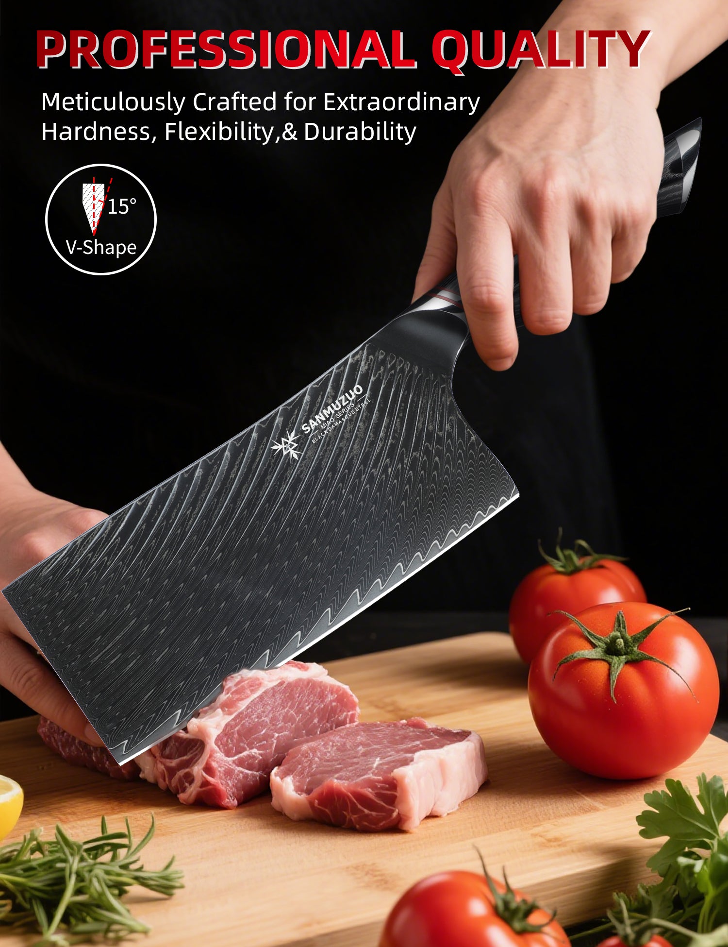 SANMUZUO 7 Inch Meat Cleaver Knife - Chinese Kitchen Vegetable Cleaver - Black Damascus Steel with Ergonomic Handle - MIAO Series
