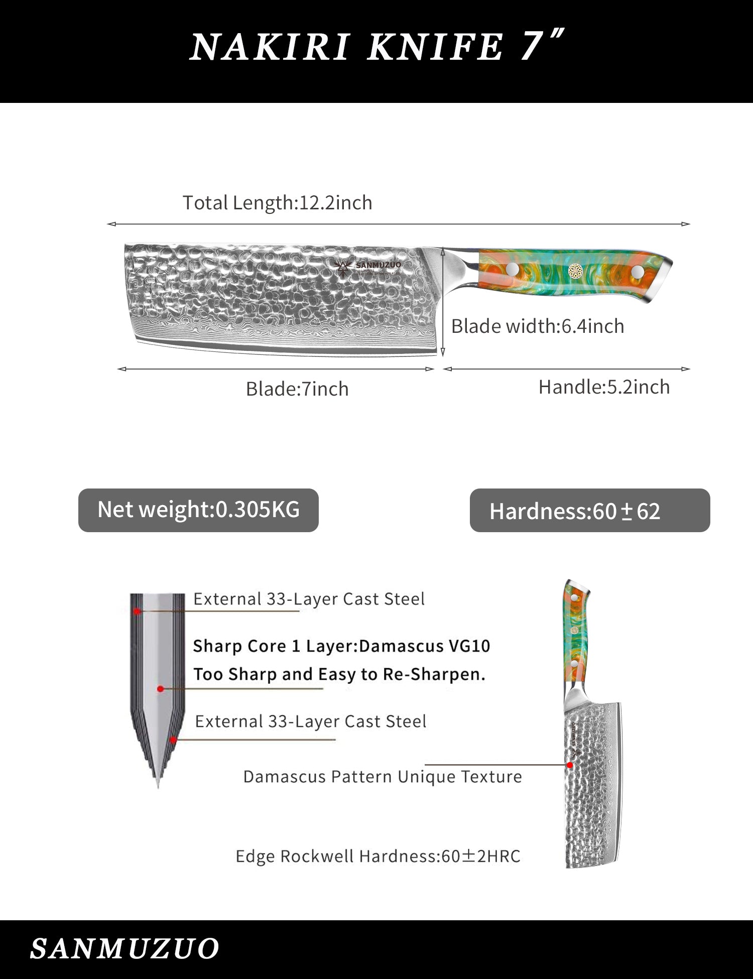 SANMUZUO 7" Nakiri Knife - Vegetable Cleaver Kitchen Knives - Japanese Usuba Knife - Hammered Damascus Steel & Resin Handle - YAO Series