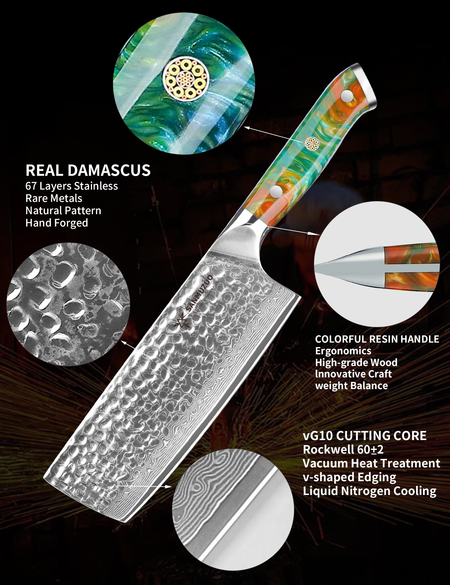 - ✔AMAZING RESIN HANDLE: The classic perfectly designed handle combined with a luxurious resin material, mirror finishing makes the resin's colorful properties exceptionally dazzling, while being long last, providing excellent control, flexibility and comfort for any hand. With the SANMUZOU's Knife in hand, there is no need to worry about your hands getting tired or sore.
